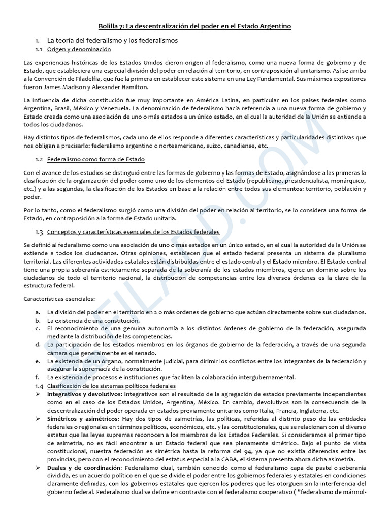 Bolilla 7: La descentralización del poder en el Estado Argentino