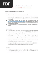 condiciones de la campaña descrita en este documento. El monto máximo del Premio
