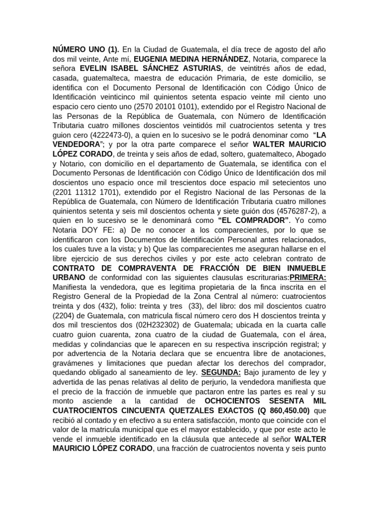 acepta la venta que se le hace. Como notaria, DOY FE: a) Que todo lo escrito me