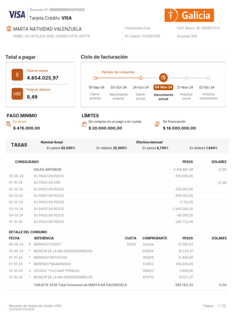 Resumen de tarjeta de credito VISA Página 1 / 10