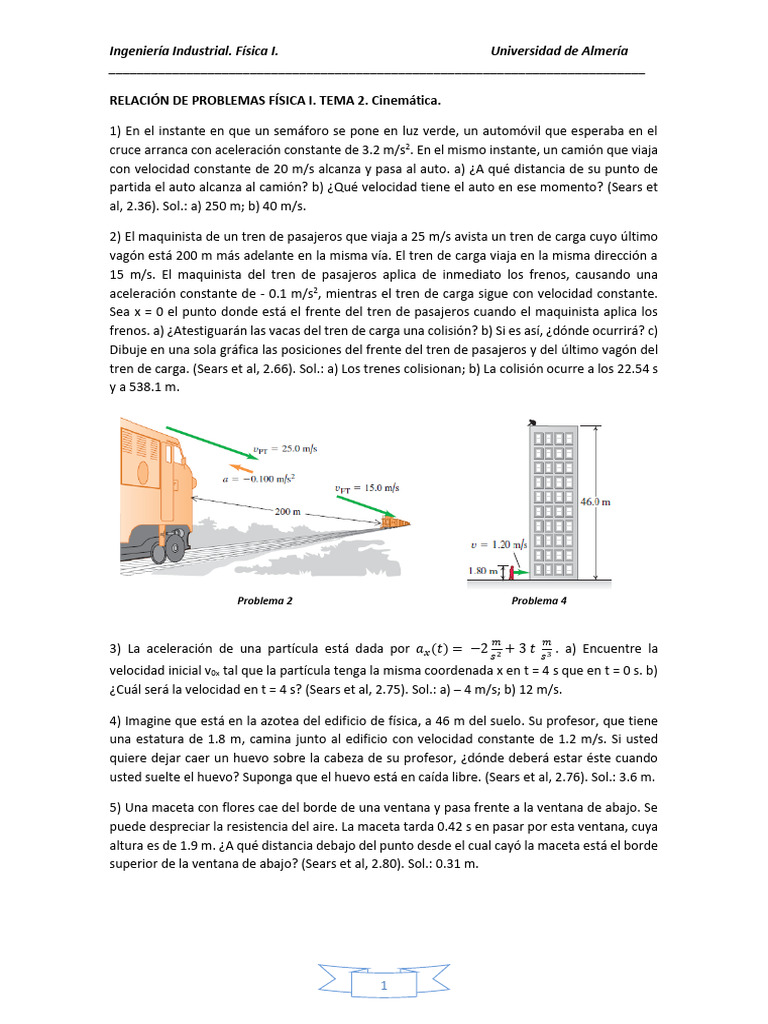 RELACIÓN DE PROBLEMAS FÍSICA I. TEMA 2. Cinemática.