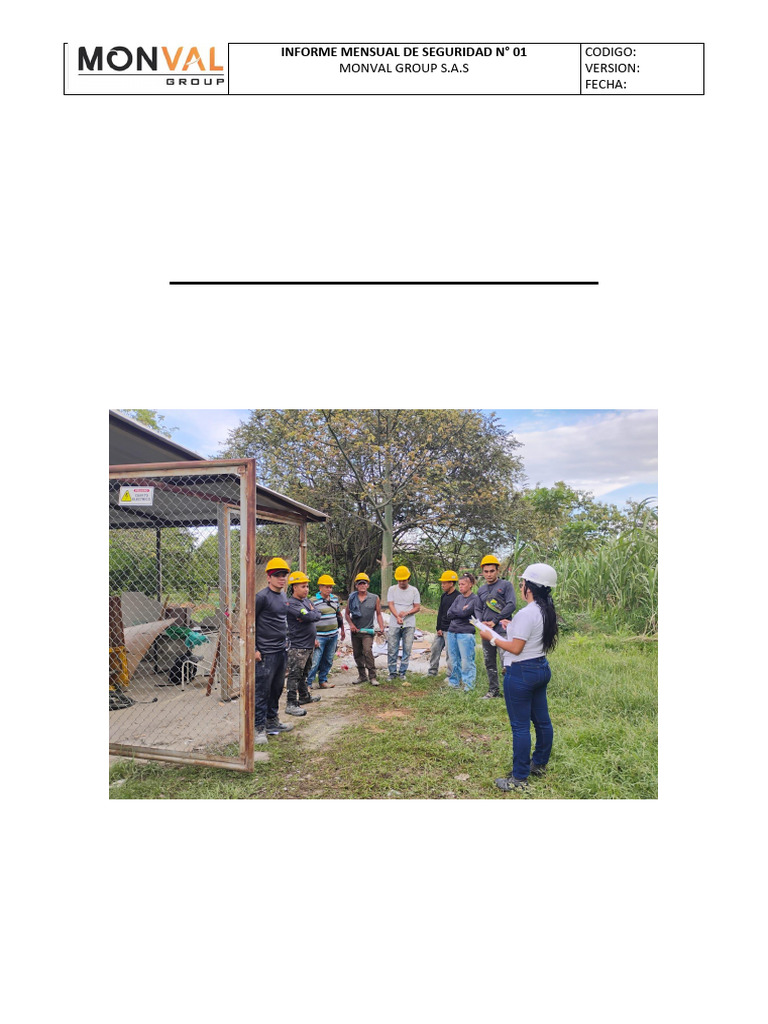 INFORME MENSUAL DE SEGURIDAD N° 01 CODIGO: