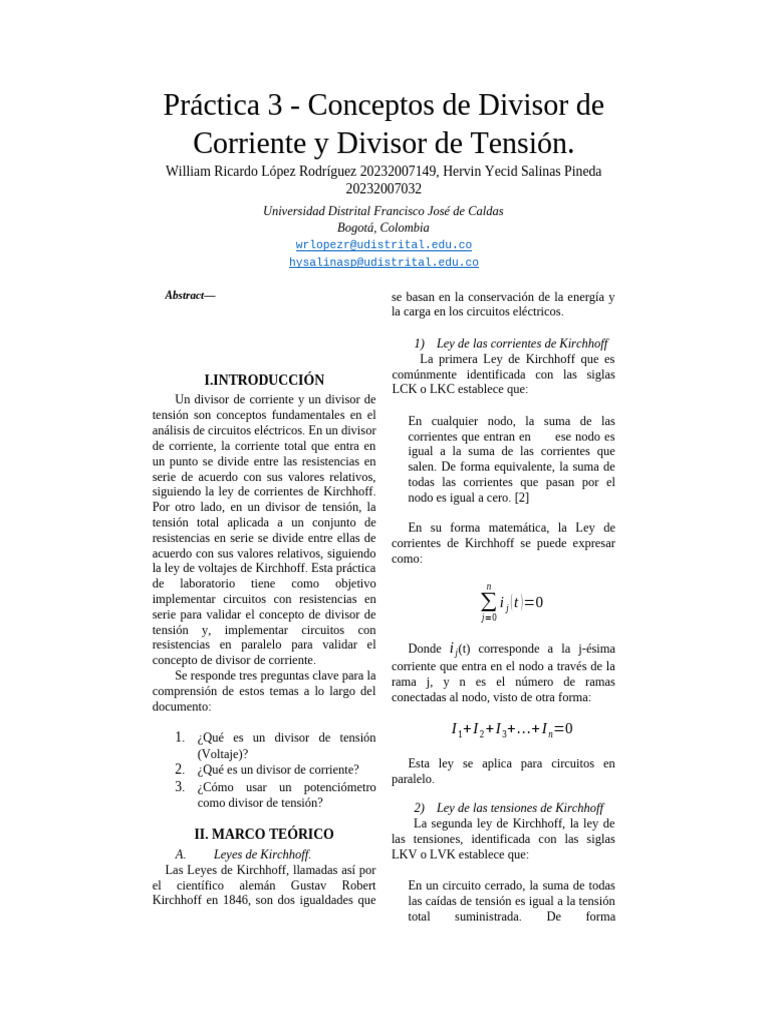 A. Leyes de Kirchhoff. LKV o LVK establece que:
