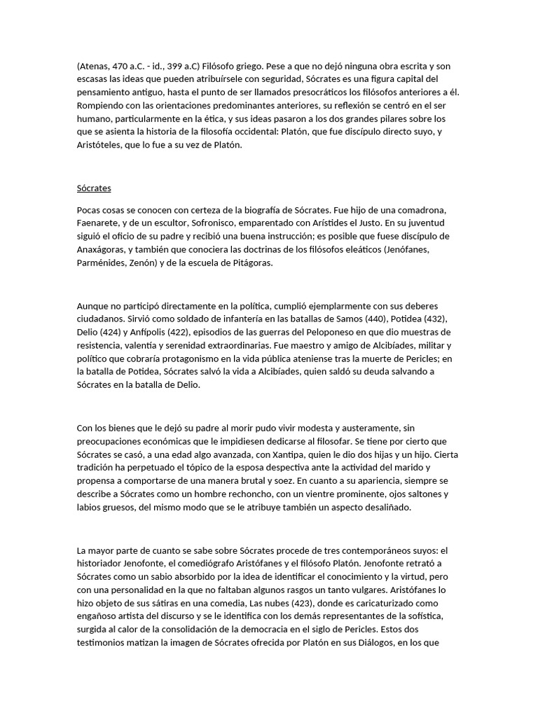que corresponde al Sócrates histórico y cuál pertenece ya a la filosofía de su discípulo. Sócrates