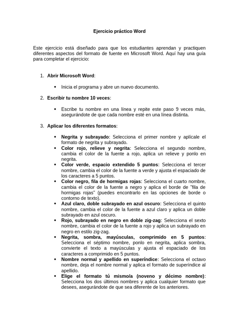 Guarda el documento con el nombre Ejercicio práctico Word y