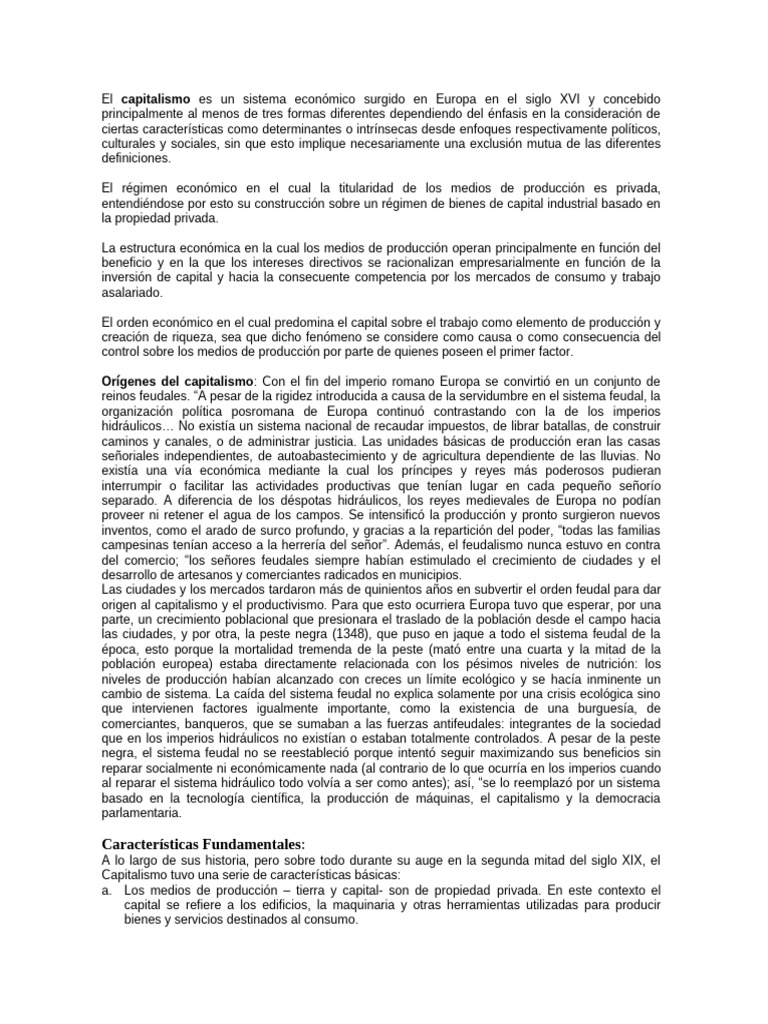 Capitalismo tuvo una serie de características básicas: