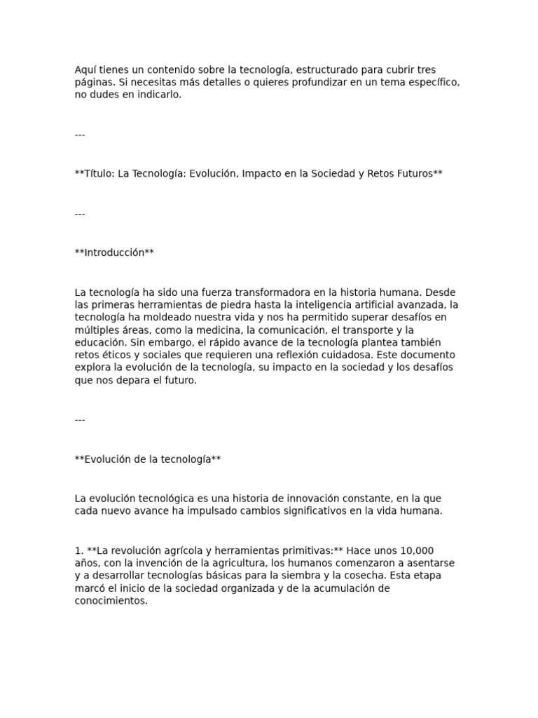 Aquí tienes un contenido sobre la tecnología, estructurado para cubrir tres