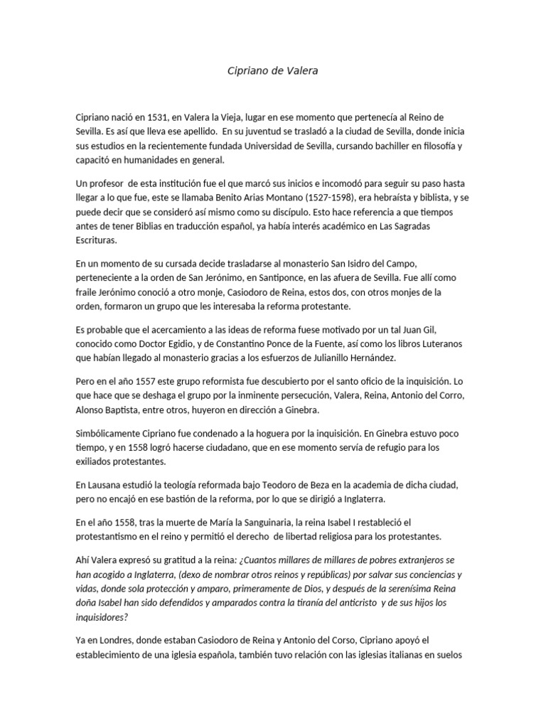 que no fue una traducción, de Valera, mejoró la calidad del texto Bíblico traducido. Pero el mismo