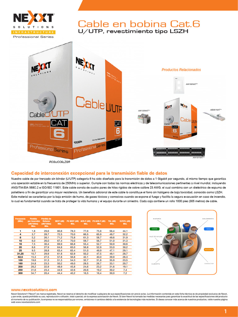 ANSI/TIA/EIA 568C.2 e ISO/IEC 11801. Este cable consta de cuatro pares de hilos rígidos de cobre calibre 23 AWG, el cual combina con un dieléctrico de espuma de