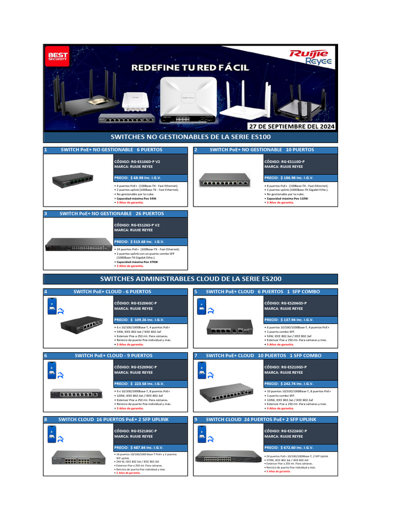 6 SWITCH PoE+ CLOUD - 9 PUERTOS 7 SWITCH PoE+ CLOUD 10 PUERTOS 1 SFP COMBO