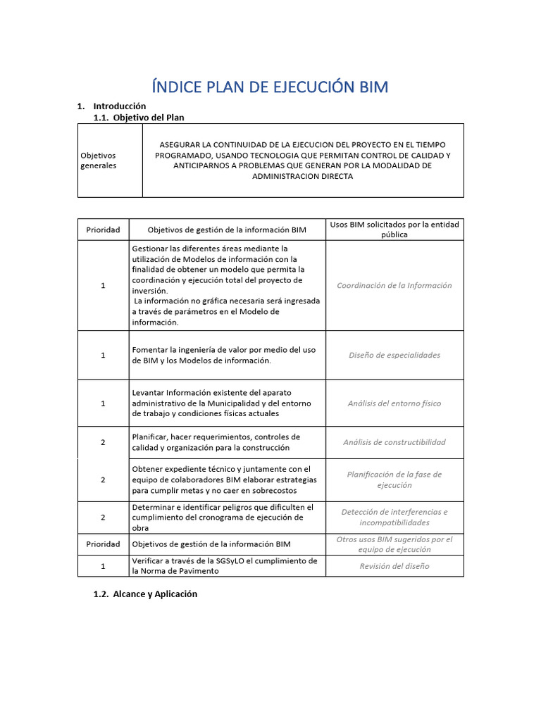 ÍNDICE PLAN DE EJECUCIÓN BIM