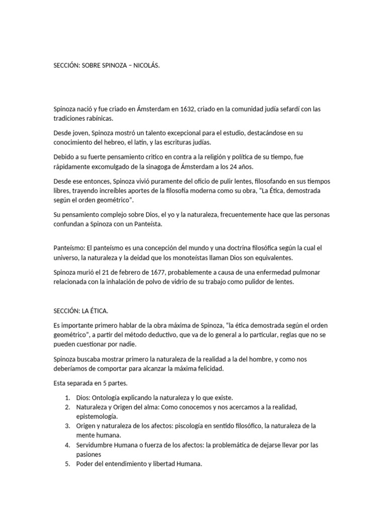 SECCIÓN: SOBRE SPINOZA – NICOLÁS.