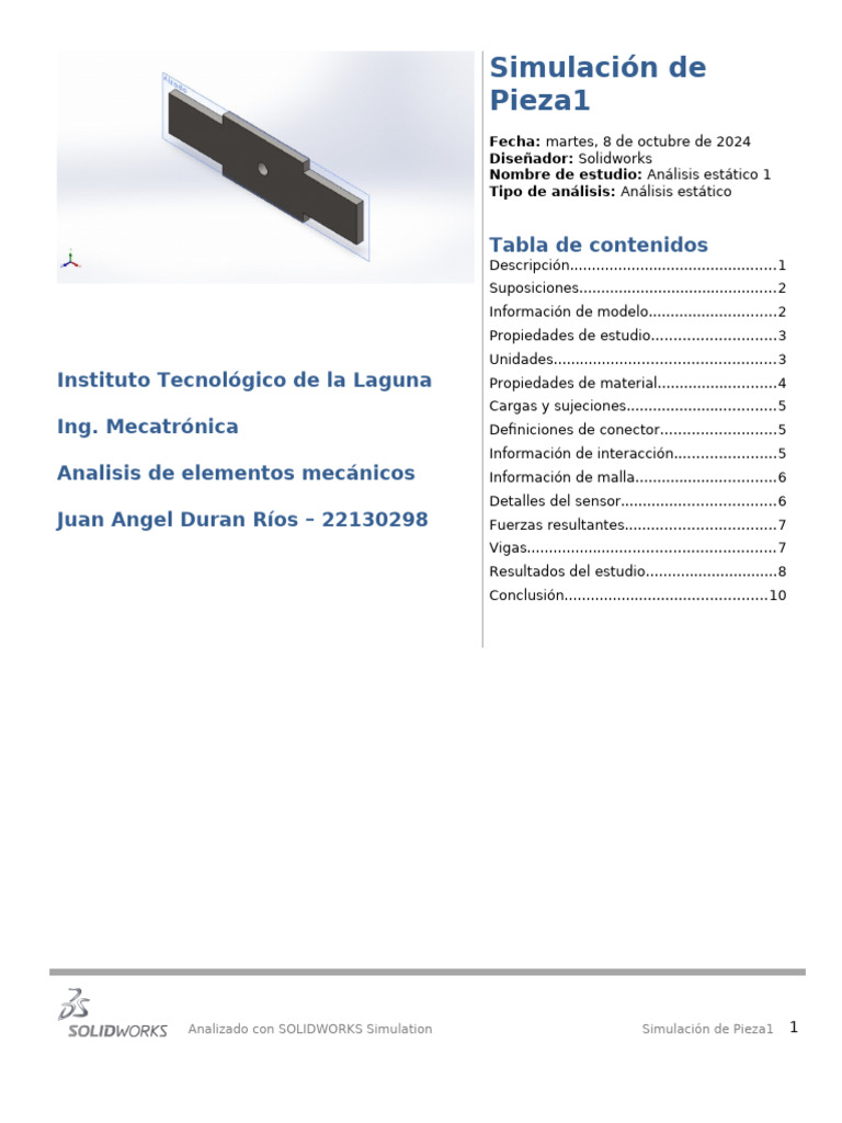 Analizado con SOLIDWORKS Simulation Simulación de Pieza1 1