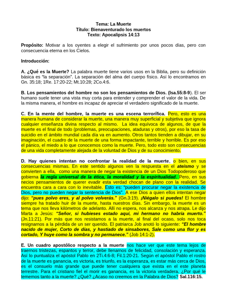 nos muestra que es una bendición la muerte, pero la muerte de los santos de Dios. Aquí hay