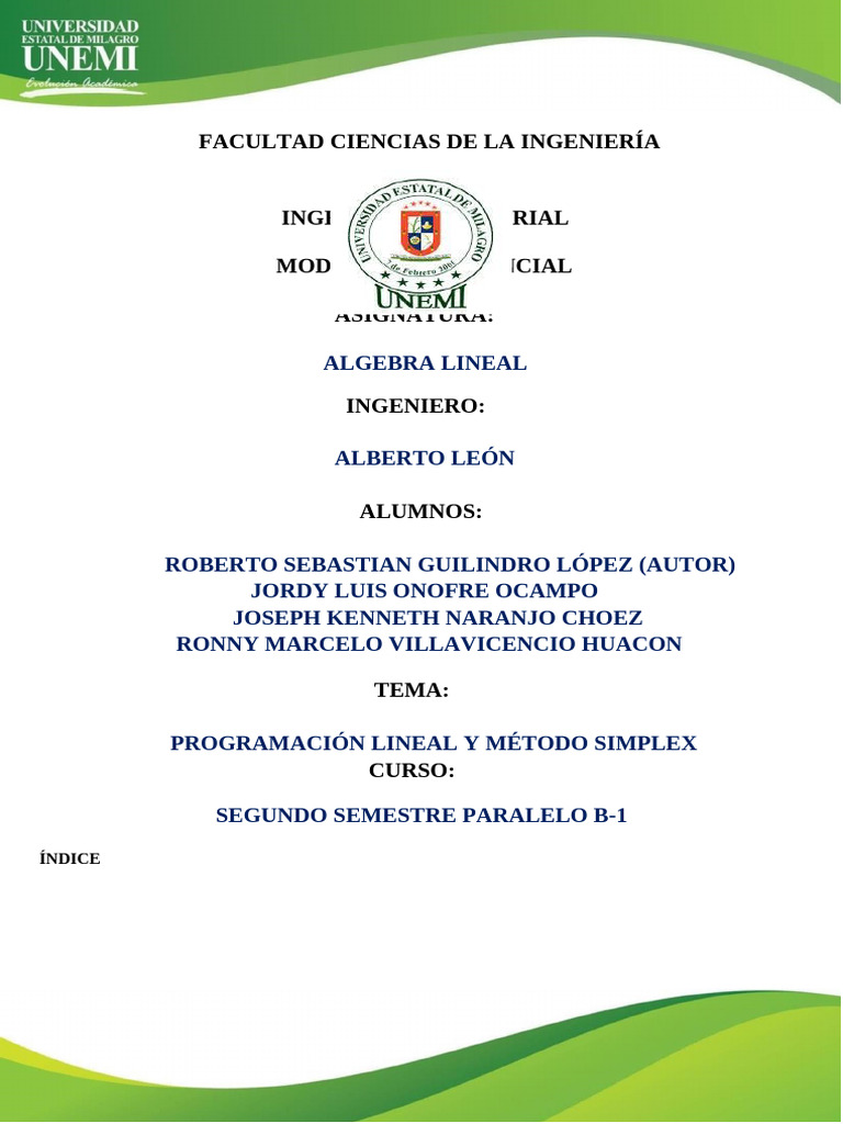 En este ensayo se abarcará los siguientes temas: Programación lineal y el Método simplex. Contendrá los