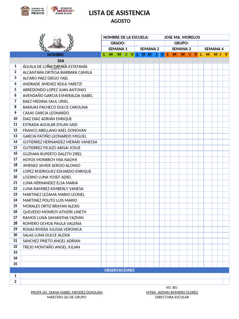 NOMBRE L M M J V L M M J V L M M J V L M M J V