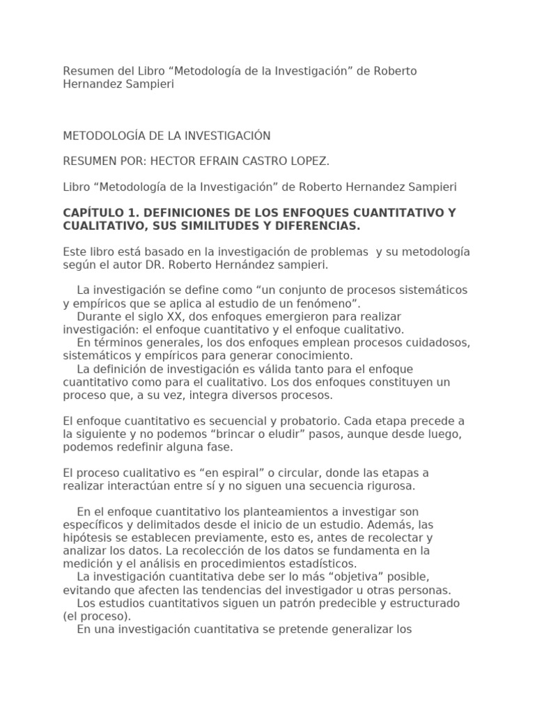 Resumen del Libro “Metodología de la Investigación” de Roberto