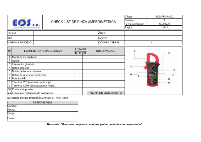 CHECK LIST DE PINZA AMPERIMÉTRICA 8/12/2024