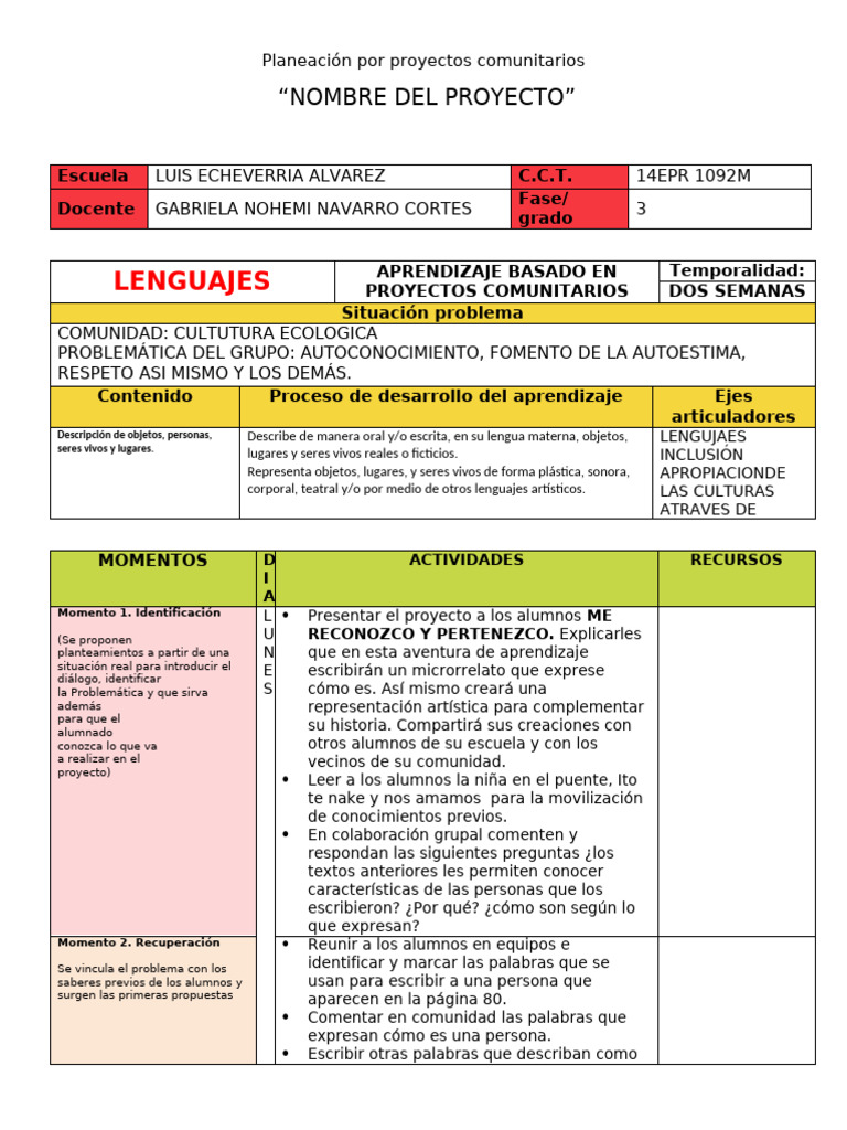 LENGUAJES PROYECTOS COMUNITARIOS DOS SEMANAS