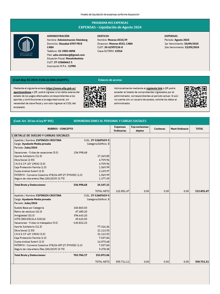 adm.steinberg@gmail.com para informar pagos de expensas, para reclamos, y para cualquier