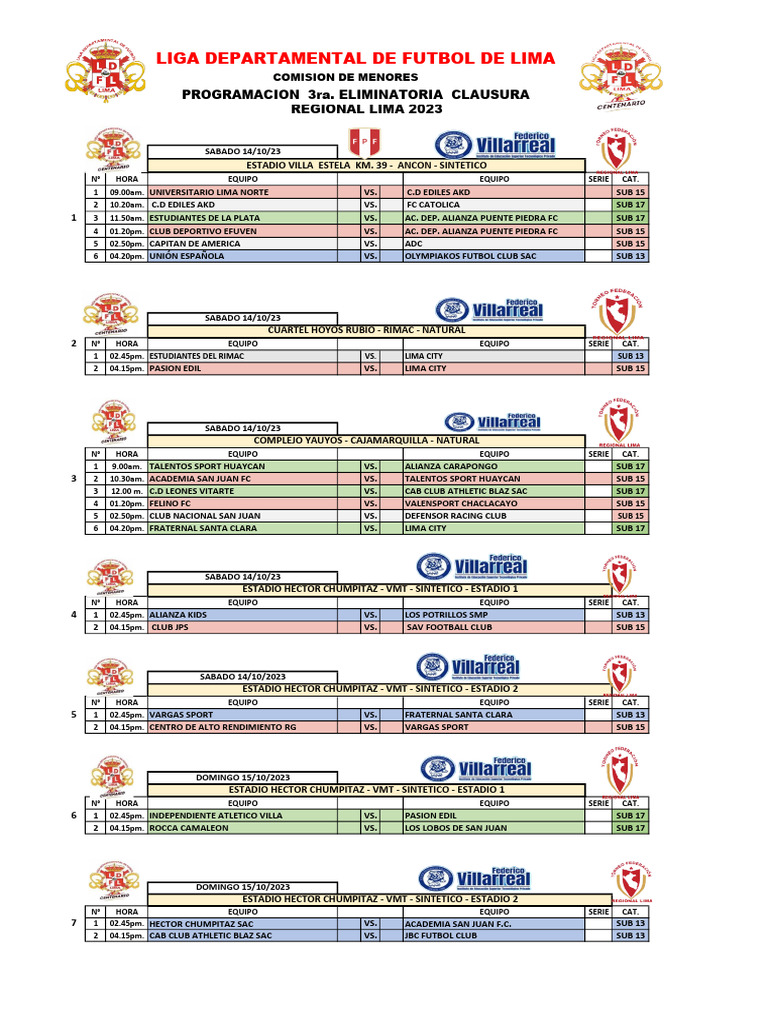 6 04.20pm. FRATERNAL SANTA CLARA VS. LIMA CITY SUB 17