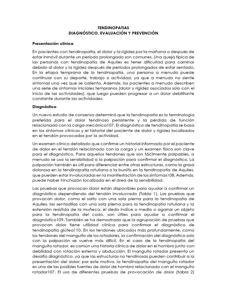 relacionada con la carga mecánica107. El diagnóstico de tendinopatía se basa