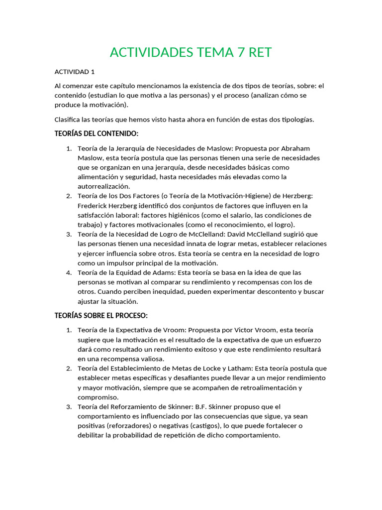 1. Teoría de la Expectativa de Vroom: Propuesta por Victor Vroom, esta teoría