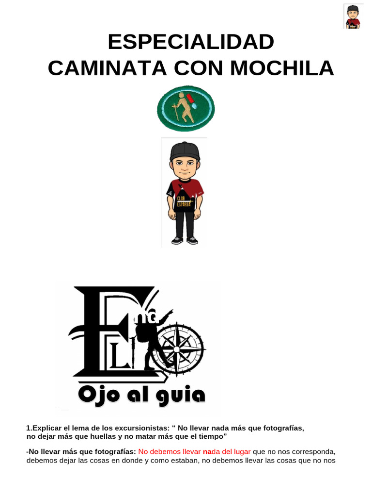 necesarias. Los materiales pequeños pueden ir en los bolsillos del pantalón o de la mochila,