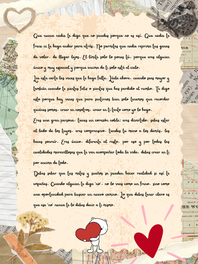 Lee esta carta las veces que te haga falta. Léela ahora, cuando seas mayor y