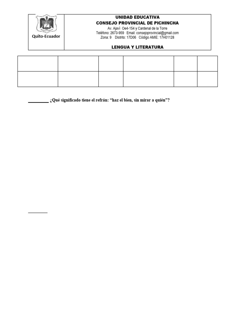 Quito-Ecuador Zona: 9 Distrito: 17D06 Código AMIE: 17H01128
