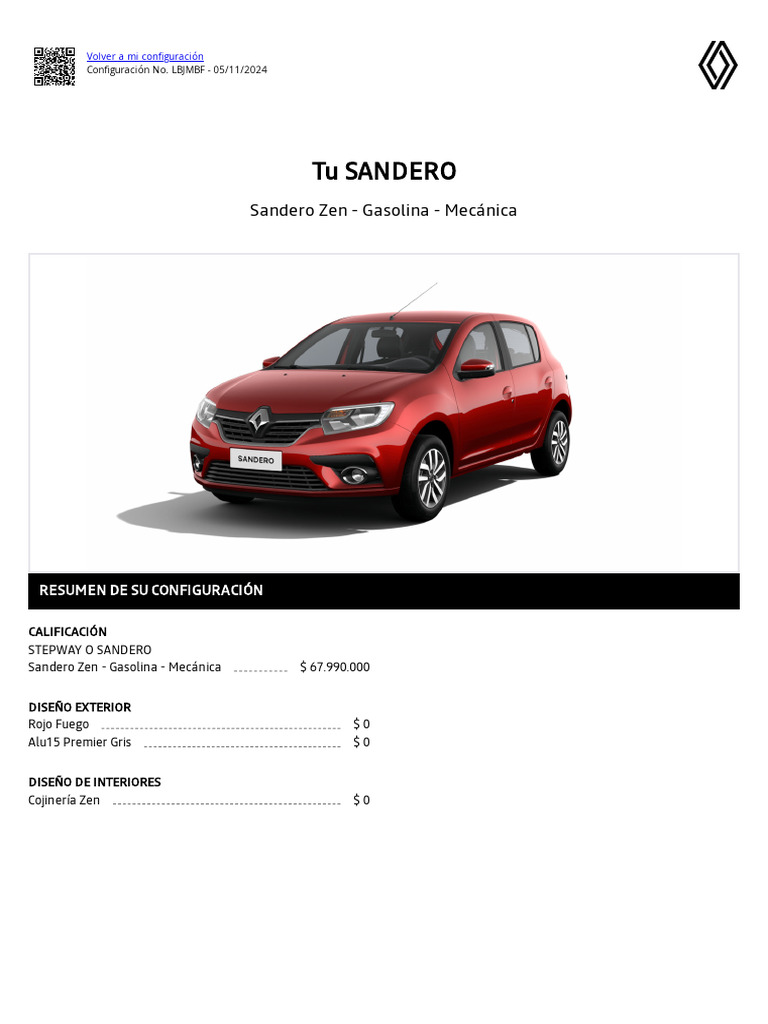Sandero Zen - Gasolina - Mecánica $ 67.990.000