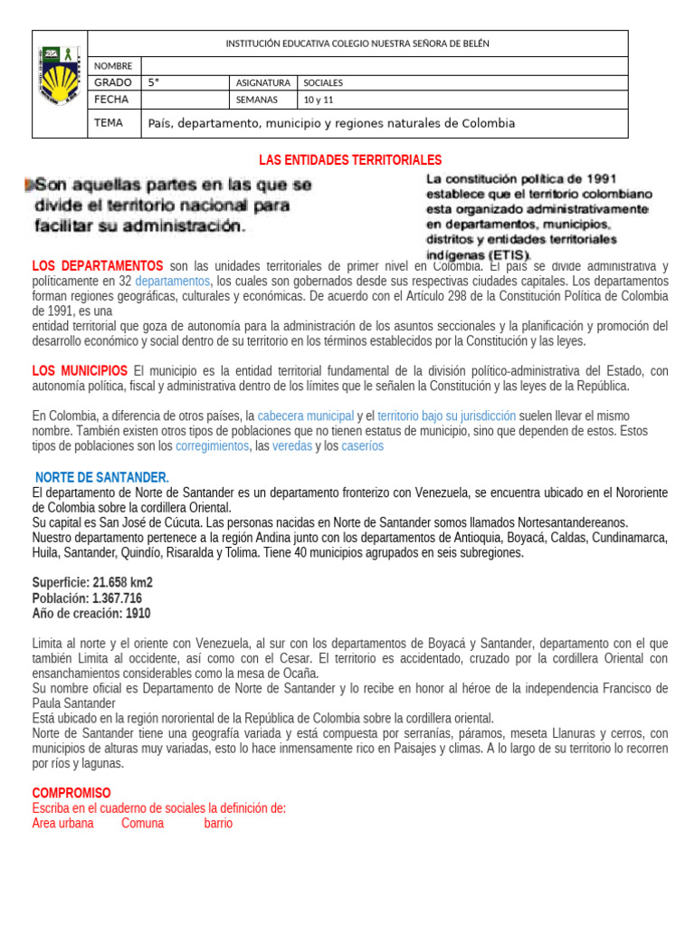 TEMA País, departamento, municipio y regiones naturales de Colombia