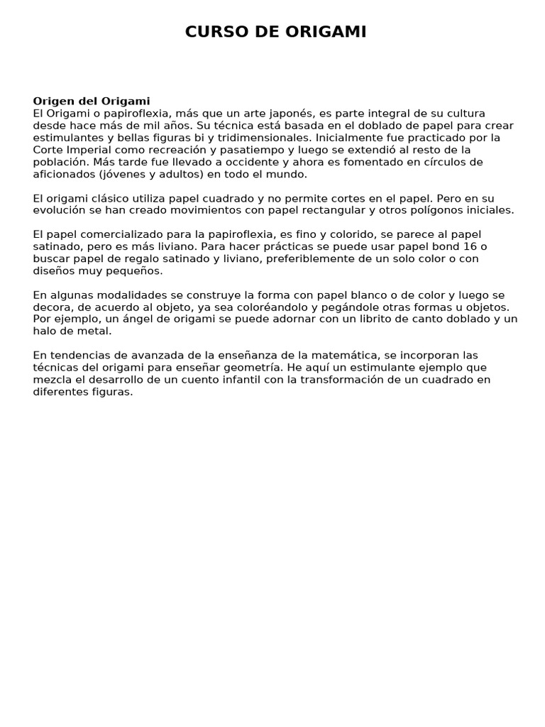 CURSO DE ORIGAMI