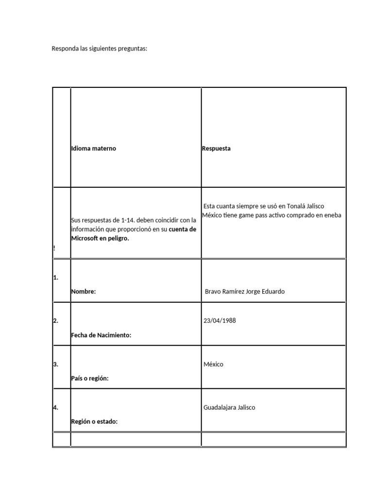 ! Si es un cliente de Xbox, rellene también la casa