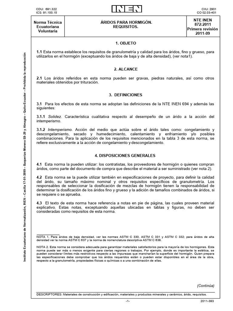Instituto Ecuatoriano de Normalización, INEN – Casilla 17-01-3999 – Baquerizo Moreno E8-29 y Almagro – Quito-Ecuador – Prohibida la reproducción