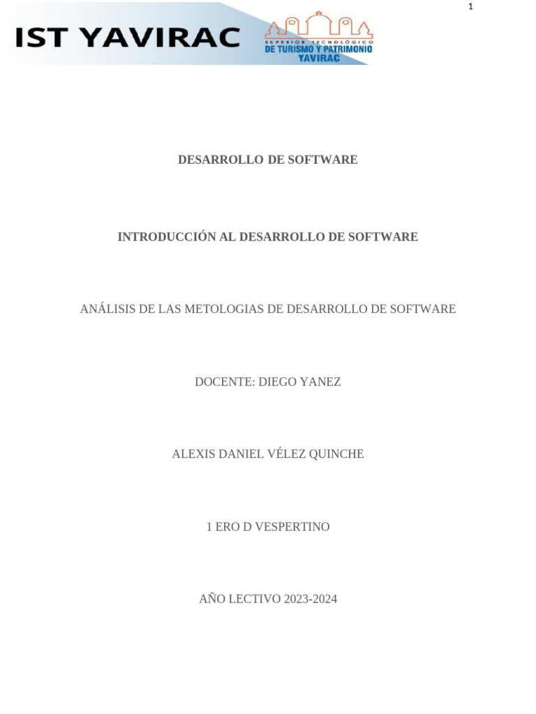 ANÁLISIS DE LAS METOLOGIAS DE DESARROLLO DE SOFTWARE