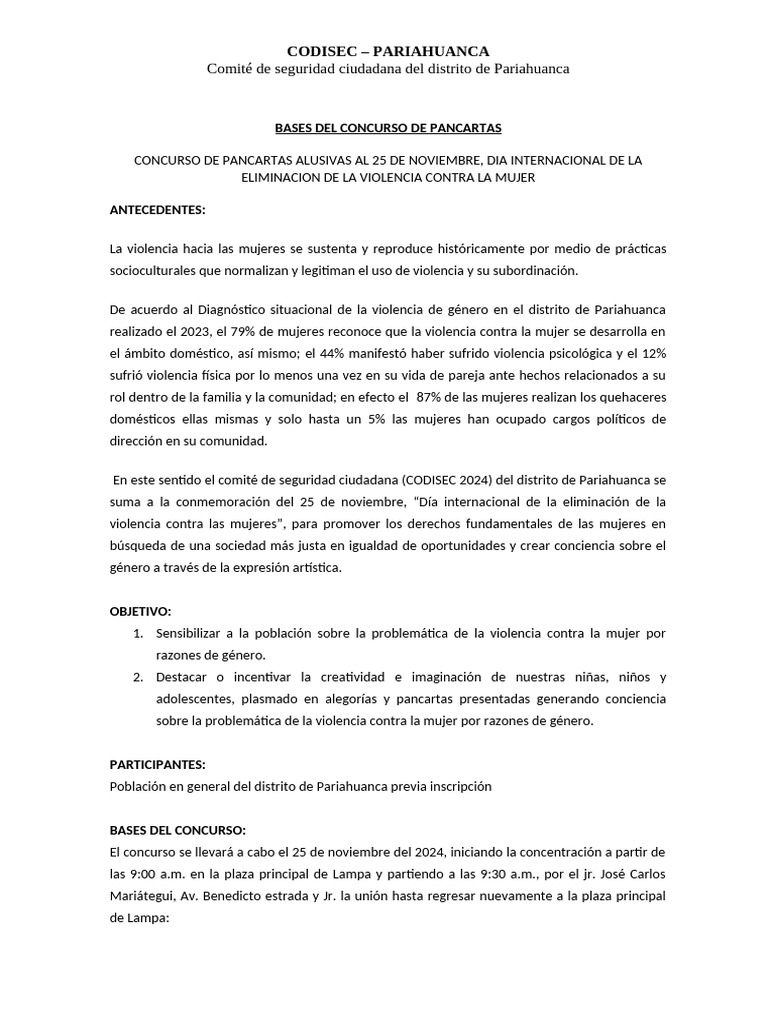 En este sentido el comité de seguridad ciudadana (CODISEC 2024) del distrito de Pariahuanca se