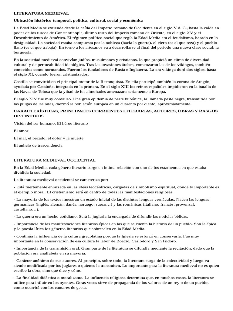 LITERATURA MEDIEVAL