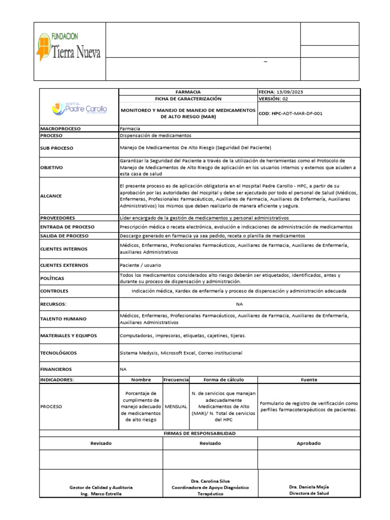 Protocolo de Manejo de Medicamentos de Alto Riesgo – Y LASA CODIGO: HPC-ADT-