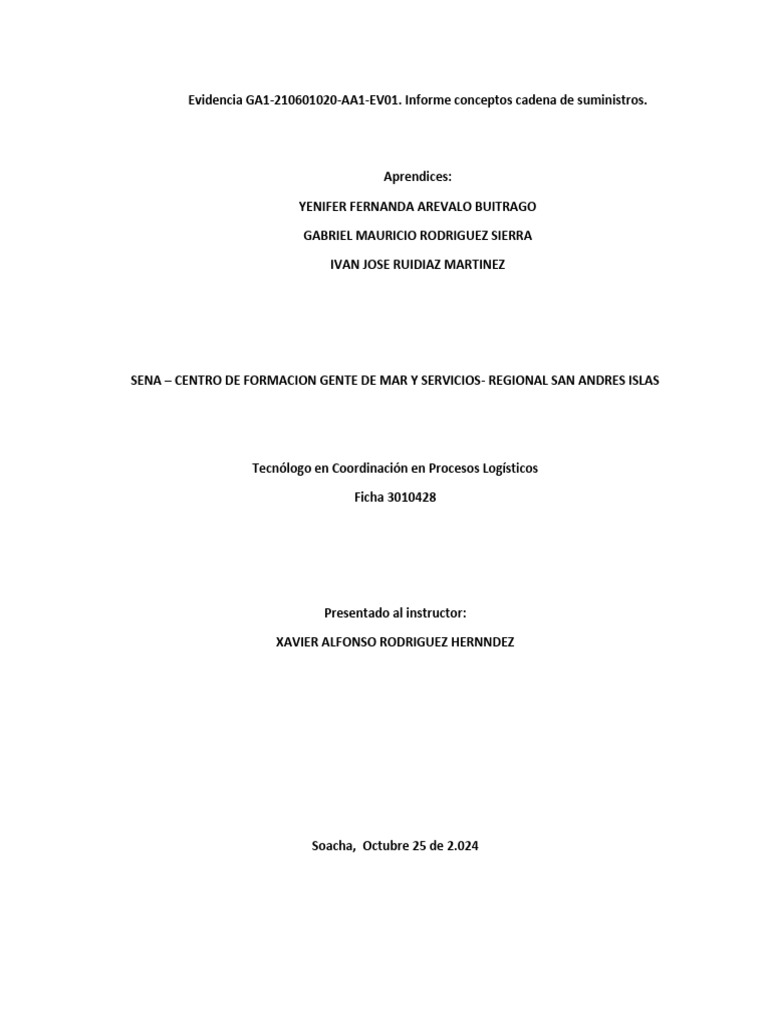 Evidencia GA1-210601020-AA1-EV01. Informe conceptos cadena de suministros.
