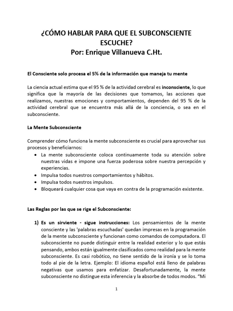 presente. Ahora sabemos que la mente subconsciente responde a las