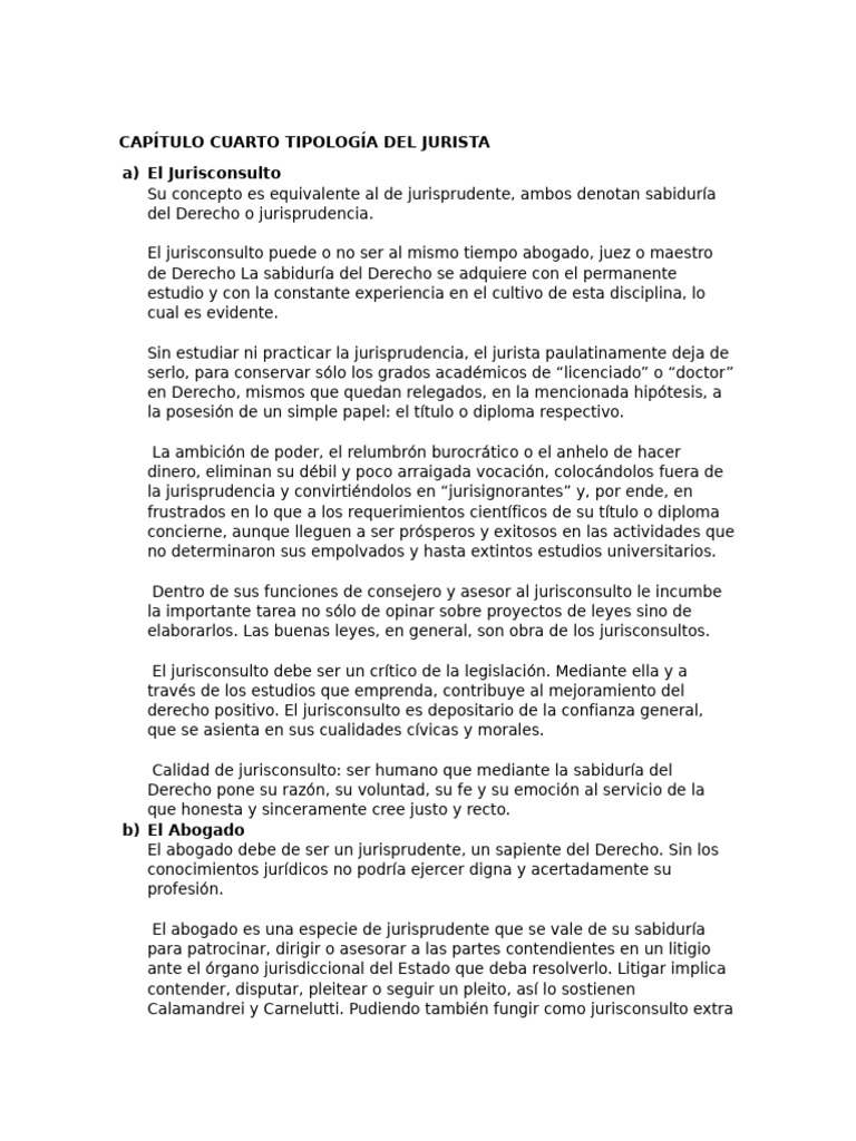 CAPÍTULO CUARTO TIPOLOGÍA DEL JURISTA