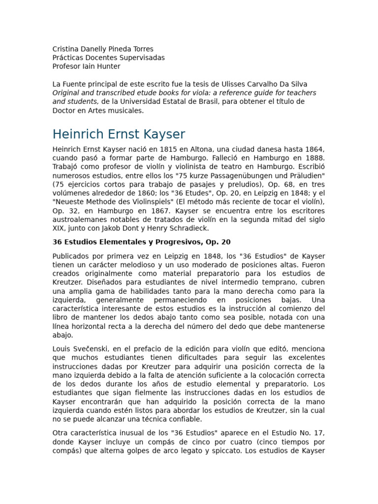 largo del estudio. Los 36 Estudios de Kayser fueron diseñados para desarrollar