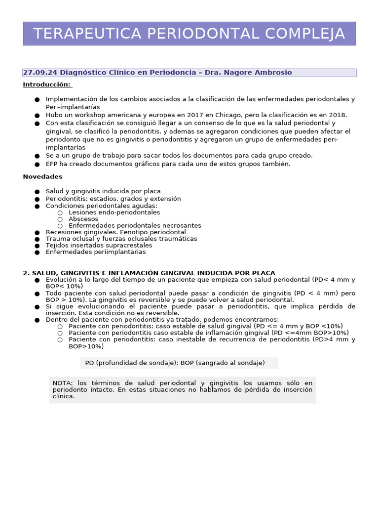 27.09.24 Diagnóstico Clínico en Periodoncia – Dra. Nagore Ambrosio