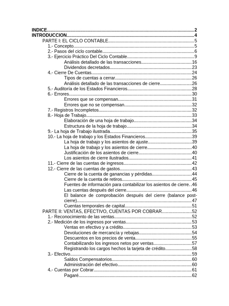 10.- La hoja de trabajo y los Estados Financieros.....................................39