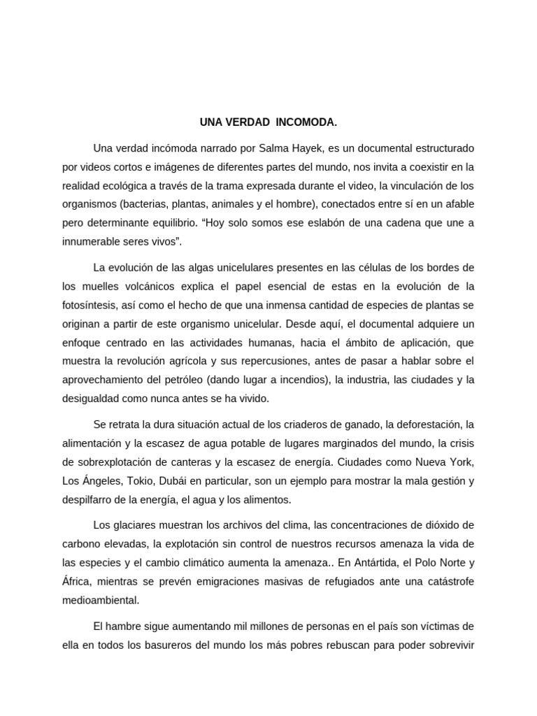 Una verdad incómoda narrado por Salma Hayek, es un documental estructurado