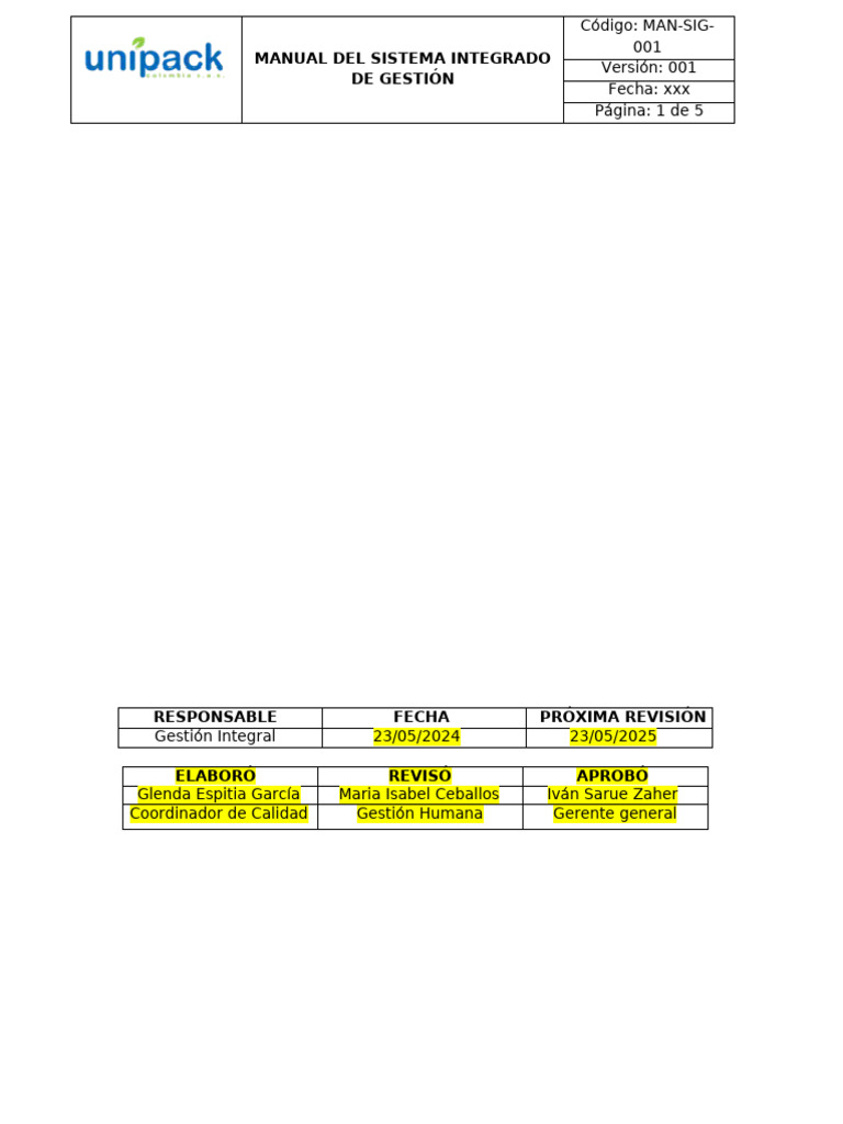 Seguridad (SGCS) de la empresa C.I. UNIPACK COLOMBIA S.A.