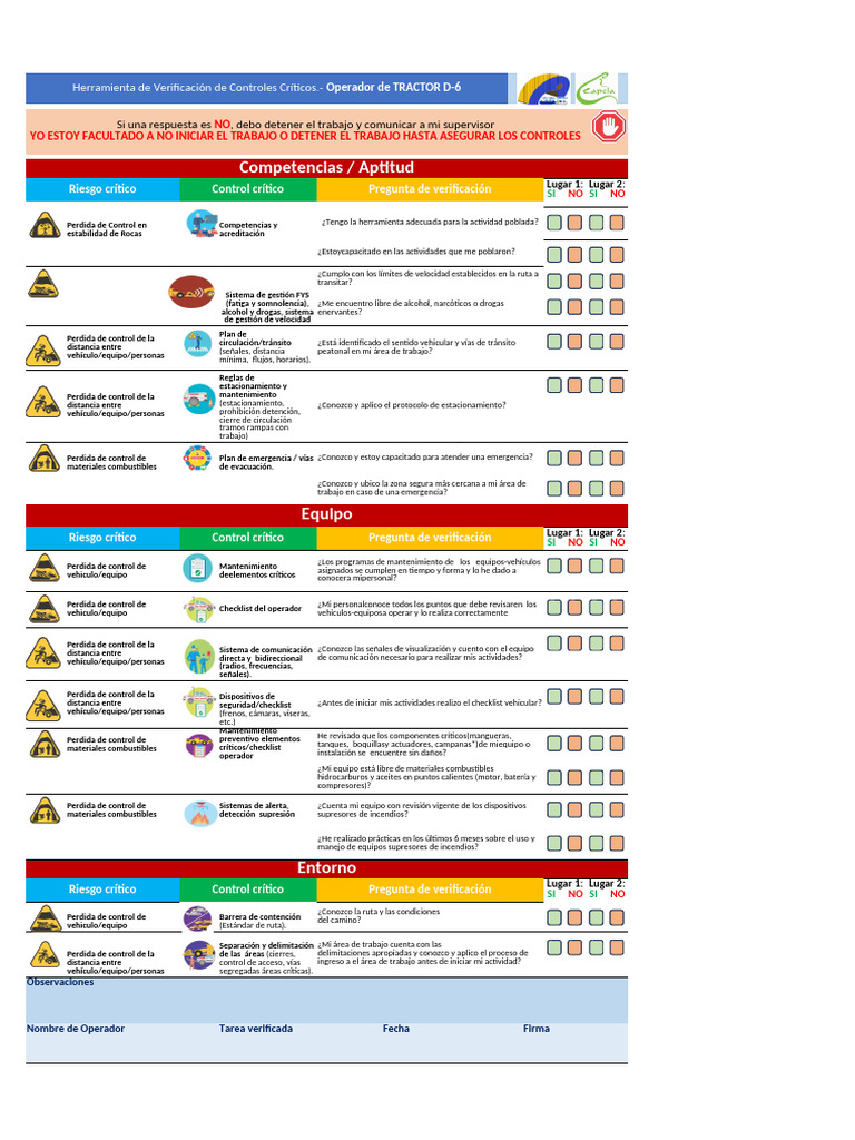 Si una respuesta es NO, debo detener el trabajo y comunicar a mi supervisor