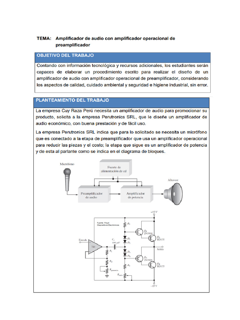 Tema del Trabajo: Amplificador de audio con amplificador operacional de preamplificador
