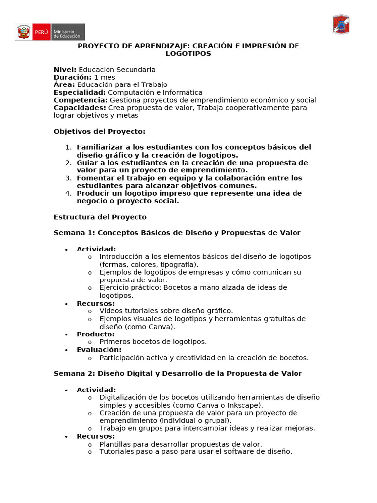 PROYECTO DE APRENDIZAJE: CREACIÓN E IMPRESIÓN DE